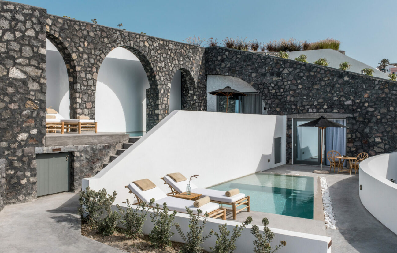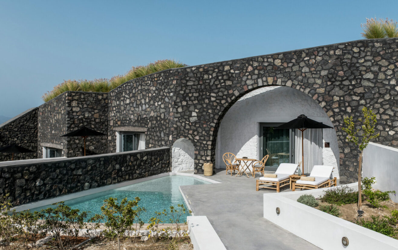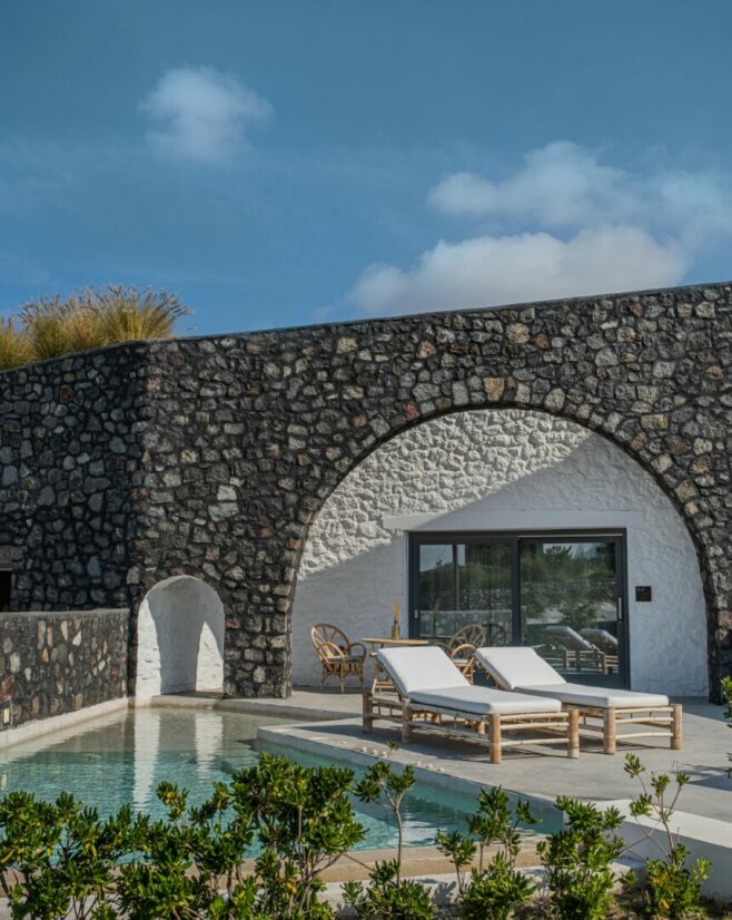 Designed to offer functionality, comfort and a sense of pure elegance to their residents, these Suites offer spacious indoor areas with a king-size bed and lush amenities. A personal outdoor veranda with sun loungers, featuring either a pool or a heated jacuzzi, completes the scenery, letting you unwind and soak in the picturesque ambience of the resort’s surroundings.