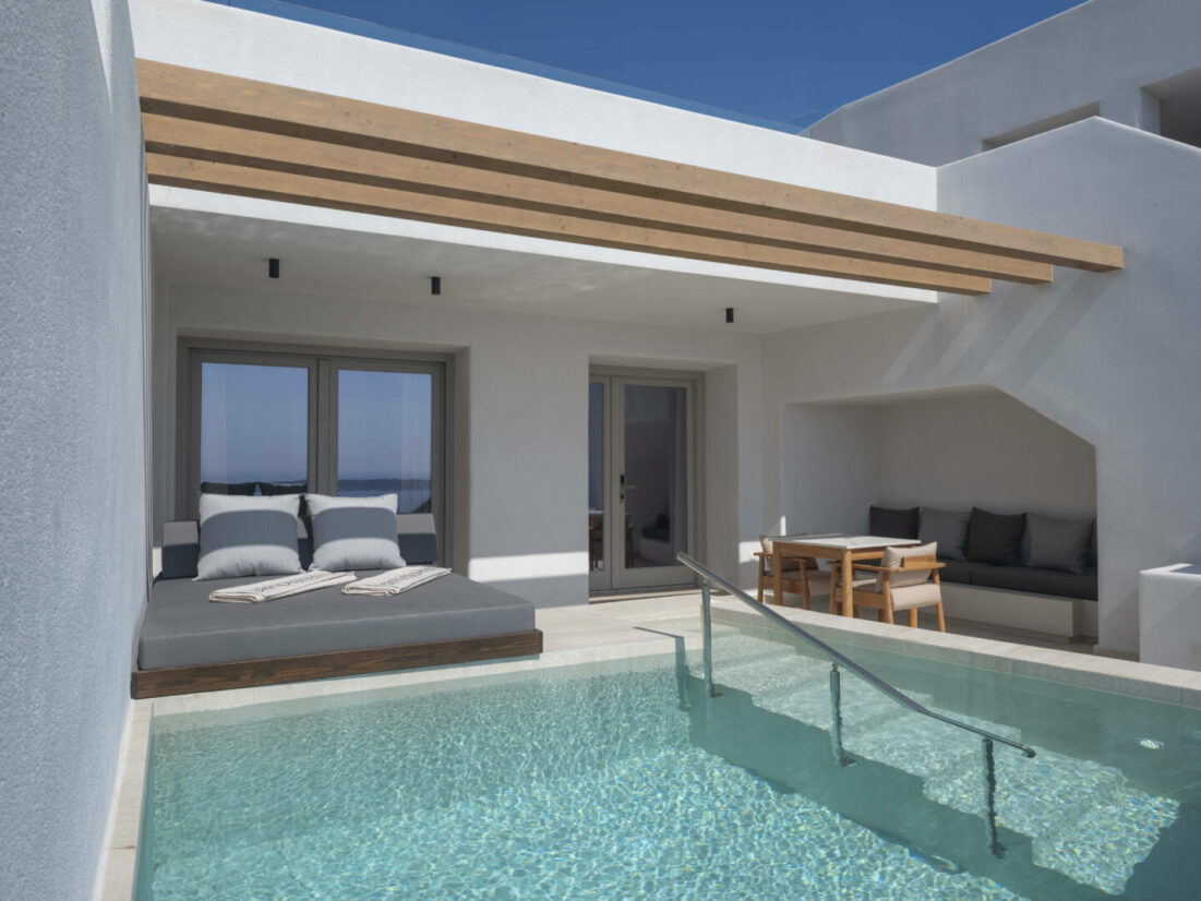 This cozy and attractive suite is ideal for guests who wish to enjoy their time here in eclectic style and endless, inspiring views of the Aegean Sea and the renown Santorini sunset. Enjoy a dazzling view of the sunset that you can enjoy from your veranda or while dipping in your private pool.