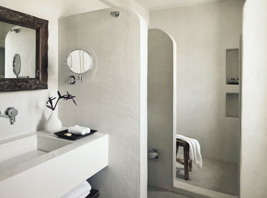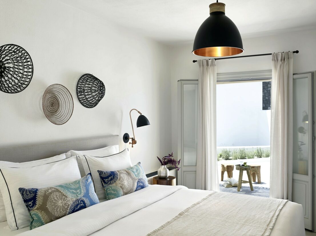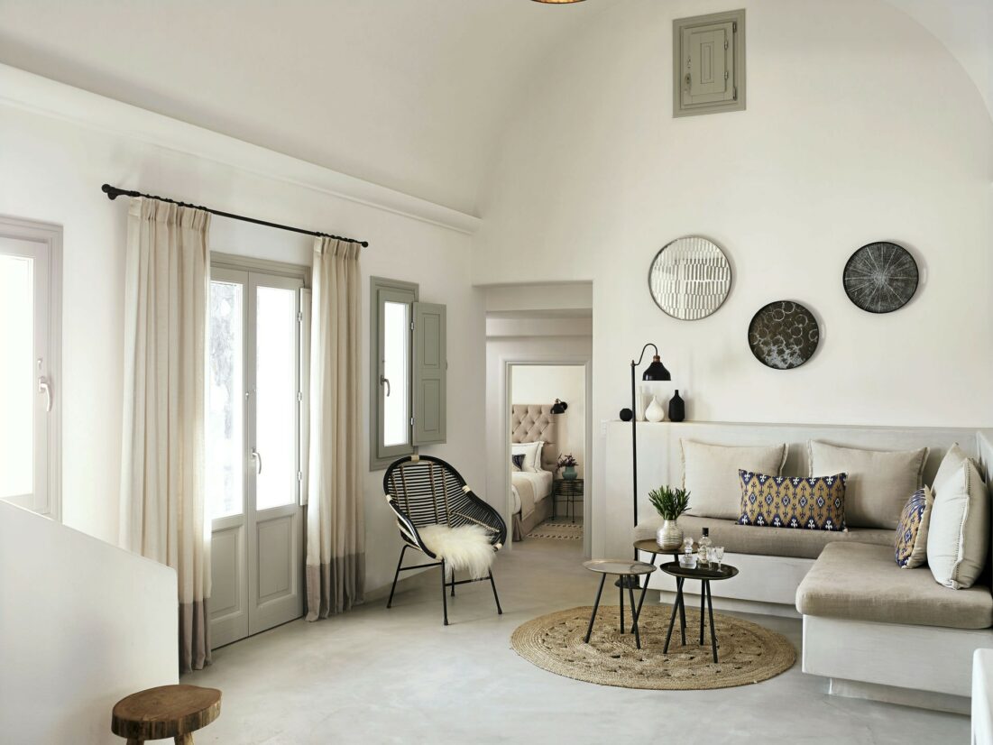 Looking out to the dazzling blues of the Aegean Sea, this suite is decorated by our top-notch designers and includes custom-made items in brass, silver, wicker and wood as well as boho-chic and ethnic touches in soothing earthy tones blended with minimal black and Cycladic white.