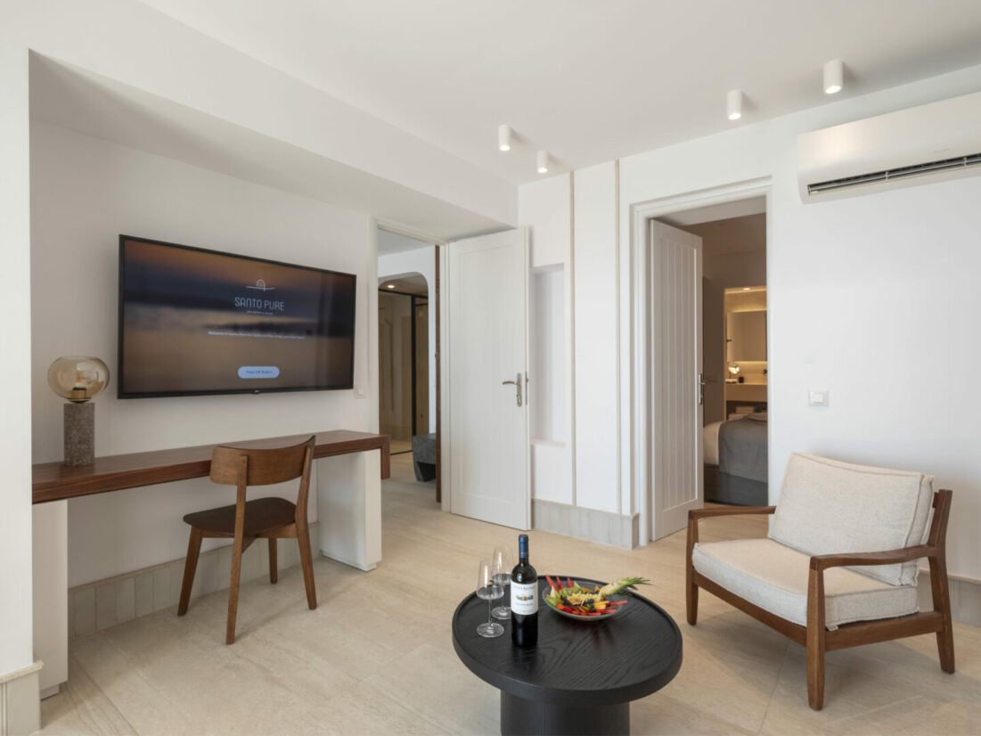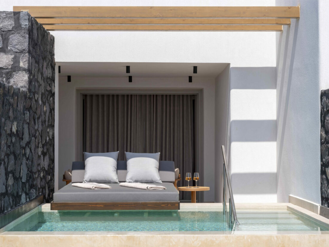 Experience Santorini’s unmatched sunsets from this signature villa-style suite. Our largest and most luxurious suite has exquisite decor, two spacious bedrooms and an expansive veranda with its own private pool.