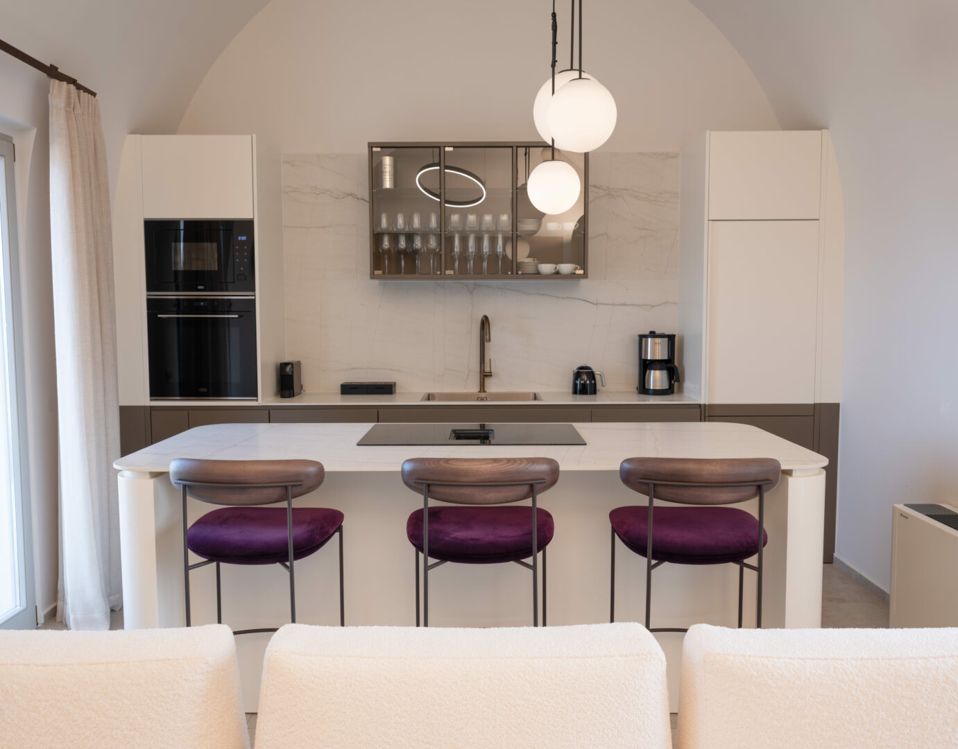 Crowing the serene heights of Oia, the newly minted Icon Villa commands unrivaled views of the vast Aegean Sea and Santorini’s mesmerizing sunsets. Spanning 257 sq. m plus an additional 389 sq.m. garden space, this iconic villa exhales the spirit of Cycladic architecture, providing a secluded sanctuary for up to 8 guests.