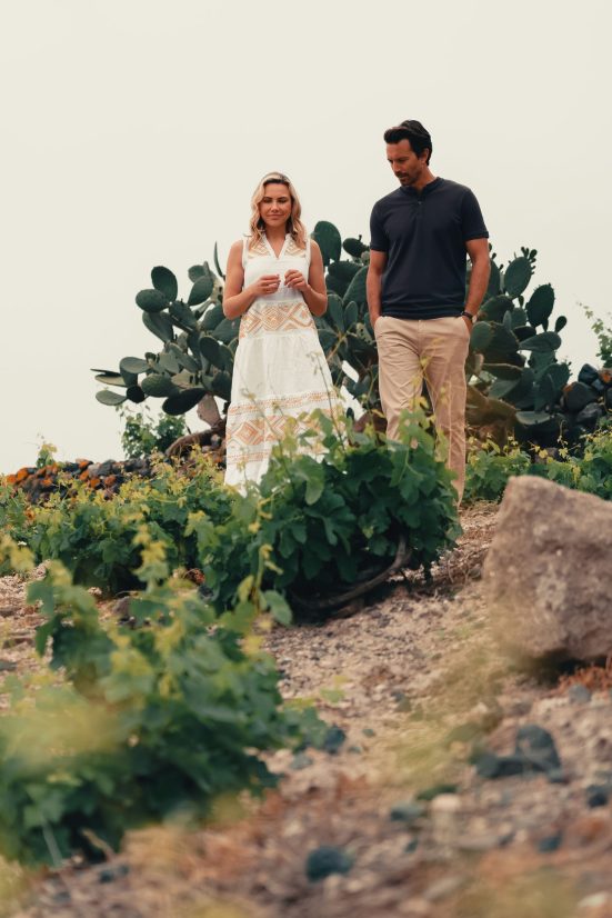 Nurtured by its volcanic soil, abundant sunshine, and minimal rainfall, Santorini boasts an ideal environment for cultivating grapes of exceptional quality. The art of winemaking on the island carries a rich history that traces back to ancient Greek and Roman times, reaching its pinnacle during the Venetian rule in the Medieval era. Embodying this legacy, the island’s indigenous vines, including the indigenous Assyrtiko, Athiri, and Aidani white grape varieties, flourish in the volcanic soil, their roots intertwining with centuries of tradition.